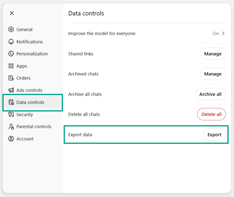 Open Data Controls in ChatGPTHave your ChatGPT export ready? Drop it here to get started.